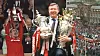 BUSSPARADE I MANCHESTER: Manchester Uniteds spillere og fans feirer The Double etter 1995/96-sesongen med bussparade gjennom byens gater.
