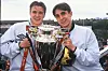 THE DOUBLE: Eric Cantona og Sir Alex Ferguson med de synlige bevisene på at United hadde vunnet The Double for andre gang på tre år.