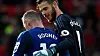 TAKK FOR SIST: Wayne Rooney veksler noen ord med David de Gea da Rooney vendte tilbake til Old Trafford som Everton-spiller