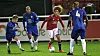 46: Sjanse med en gang for United. Helm får litt rom på 15 meter, men keeper får blokkert.