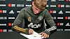 STORT ØYEBLIKK: Teden Mengi lar seg intervjue etter United-debuten mot LASK i Europa League.