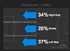 Her ser vi en tabell over hvor mange angrep lagene har på høyresiden, venstresiden og i midten – sortert etter prosentandelen angrep på høyre side. Der ligger United sist i Premier League, de angriper altså minst på høyre side av samtlige lag. Dette gjør at laget fremstår ganske forutsigbare.