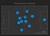 Bildet over viser gjennomsnittsposisjonene til spillerne under kampen. Her ser vi vesentlig forskjell på Luke Shaw (23) og Aaron Wan-Bissaka (29); der Shaw gjennomsnittlig har vært mest på Arsenals halvdel, mens Wan-Bissaka har vært mest på egen halvdel.