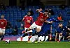 EN AV ANLEDNINGENE HVOR UNITED TESTET MENDY: Marcus Rashford har scoret på frispark fra distanse på Stamford Bridge tidligere, men denne gangen endte ikke ballen i nettet.