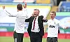 KLOKE VALG: Ole Gunnar Solskjær roses for snuoperasjonen som har sett United forbli ubeseiret i Premier League siden januar. Her jubler nordmannen for Jesse Lingards 2-0-mål sammen med førstelagstrenerne Michael Carrick og Kieran McKenna.