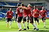 MATCHVINNER: Bruno Fernandes feirer mål og seier med lagkameratene.