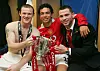 HÅPER PÅ UNITED-TROFÉER: Phil Bardsley, her sammen med Wayne Rooney og Kieran Richardson etter ligacupfinalen i 2006.