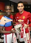 Grei dag å være kaptein: Chris Smalling og Eric Bailly med Ligacup-troféet.