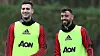 FORNYELSE?: Diogo Dalot og Bruno Fernandes har andre ting å tenke på enn sponsorkontrakter, men Uniteds avtale med AON som sponser både treningsutstyret og treningsfeltet til United går ut sommeren 2021.