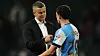 HYGGELIG GJENSYN: Daværende Cardiff-manager Ole Gunnar Solskjær og Corry Evans slår av en prat etter at Solskjærs menn møtte Blackburn i Championsship.
