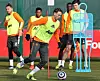 TRENTE FINT TIRSDAG: Nemanja Matic i aksjon tirsdag, med Telles, Fred, Bailly og Maguire bak seg i bildet.