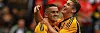 Bildet over: Brady, til venstre, feirer et mål for Hull mot Liverpool i en treningskamp.