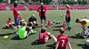 Deltakerne var gjennom to økter per dag, noe som medførte slitne ben på slutten av fotballskolen.