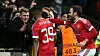 ELLEVILLE SCENER: Dean Henderson var blant de første til å gratulere Marcus Rashford med sitt første United-mål.