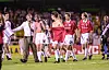Maracanã, Rio de Janeiro, 8. jan. 2000: Slagne United-spillere forlater banen etter å ha tapt 3-1 for Vasco Da Gama.