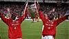 SUPERDUOEN: Dwight Yorke og Andy Cole – riktig nok ikke etter den kampen Gary Neville snakket om, men etter en annen (ikke ubetydelig) kamp i Barcelona.