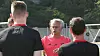 Uniteds tidligere kommunikasjonssjef Phil Townsend hvisker ham noen velvalgte ord i øret.