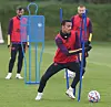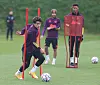 GOD STEMNING: Edinson Cavani, Paul Pogba og Bruno Fernandes på mandagens treningsøkt før avreise til Paris.