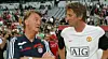 Edwin van der Sar of Manchester United (R) speaks to Bayern Munich's coach Louis van Gaal ahead of the pre-season Audi Cup match between Manchester United and Boca Juniors at the Allianz Arena on July 29 2009 in Munich, Germany.