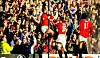 FOLKEFEST: Eric Cantona og reservekeeper Tony Coton hylles av United-fansen