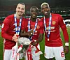 TO AV TRE UTE: Zlata Ibrahimovic og Eric Bailly må se finalen i Stockholm fra tribunen, mens Paul Pogba er bankers på laget som møter Ajax neste uke.