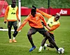 MANDAGENS TRENING: Axel Tuanzebe i duell med Paul Pogba.
