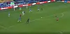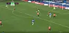 Everton-spilleren kan løpe rett frem, bokstavelig talt, og kan avslutte mot mål. Det blir heldigvis avverget.