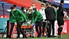 UT PÅ BÅRE: Eric Bailly måtte fraktes bort på båre etter en skikkelig smell i hodet.