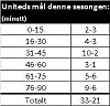 Trøsten er at United er veldig sterke rett før og rett etter pause, med en målforskjell på 10-2 rett før pause og 3-1 rett etter hvilen.