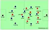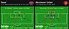Manchester United kom i en type 4-2-3-1 variant. Jones var dypest på midten, Giggs gikk oftere frem i banen, men hadde en forholdsvis lav utgangsposisjon. Park var den høyeste sentrale, men ikke like høy som Rooney pleier å utføre tilsvarende rolle. Kanskje var United også 4-3-2-1. Nevnte Wayne Rooney startet som ensom spiss, kantene Nani og Young var bredere enn mot Aston Villa.