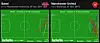 Fotballanalyse har tidligere vært inne på Uniteds manglende evne til å skape målsjanser i PL den seneste tiden. Dette var ikke problemet denne gang. Som vi har vist, slo de altså 46 innlegg/ lange pasninger på den siste tredjedelen. 22 ganger kom de til avslutning, men bare 6 av disse traff mellom stengene: