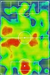 Bildet viser: Blant annet at United ikke hadde altfor mye spill inne på West Hams halvdel. Sammenlikn gjerne med samme heatmap etter Watford-kampen, der Martial stort sett var med mer offensivt, og United også hadde spill på høyrekanten.