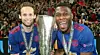 Zlatan, Bailly og Rojo med Europa League-trofeet.