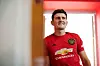RED AND READY: Harry Maguire i United-drakt. Stopperen skrev under tidligere denne uka.
