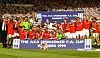 I LYKKERUS: United-spillerne jubler med fansen etter at seieren er et faktum takket være et sensasjonelt comeback.