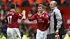 DRØMMEDEBUT: Henrik Larsson debuterte for Manchester United i FA-cupen mot Aston Villa i 2007. Larsson sendte United i føringen, Villa utlignet, men så kom Ole Gunnar Solskjær inn for svensken og sikret den avgjørende 2-1-scoringen i kampens siste minutt.