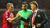 For å illustrere et poeng til Mike Dean, kastet han seg like godt ned på bakken, til United-supporternes store glede.