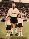 EPLET OG STAMMEN: Juan Mata senior med sine to barn, Juan og Paula. Mata senior spilte for Burgos og Oviedo i La Liga og nest øverste divisjon i Spania. Foto: Privat