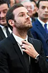 RETTER PÅ SLIPSET: Ulastelig antrukket retter Juan Mata litt på slipset før han skal få heder fra den spanske dronningen.