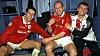 MED GRUNN TIL Å SMILE ETTER KAMPEN: Ronny Johnsen var bestemann i midtforsvaret, men Jaap Stam spilte seg stort opp utover i kampen.