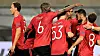 Det var en rolig åpning på kampen, der noen ganske ufarlige dødballer var beholdningen, i tillegg til en situasjon hvor topptrioen Greenwood/Rashford/Martial nesten klarte å spille seg gjennom det danske forsvaret.