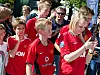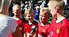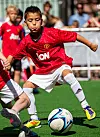 En unggutt i aksjon for United mot Klanen i en oppvisningskamp. Kampen endte 5-5: