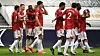 OPPLØFTENDE: Seieren satt langt inne mot Newcastle, men Uniteds spill gledet og mt slutten løsnet det skikkelig. Her jubler United-spillerne for Aaron Wan-Bissakas 3-1-scoring.
