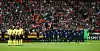 0: Antonio Valencia får æren av å bære kapteinsbindet i kveld. Ecuadorianeren ser preget ut, i likhet med resten av Uniteds spillere i det de entrer gressmatta på Friends Arena i Stockholm. Det har vært en tung og innholdsrik uke for de røde djevlene og byen Manchester.