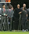 SLUTT: Zlatan kaster krykkene og beiner ut på banen for å feire med resten av United-spillerne! Dette var deilig!