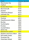 Det er her igjen verdt å merke seg at denne OPTA-statistikken er fra før denne runden, og at Brighton og West Hams sprinter fra fredag kveld derfor ikke er med.