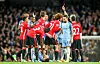 27. april 2016: Det koker på Etihad idet dommer Martin Atkinson viser rødt og sender Marouane Fellaini i dusjen. «Offeret», Sergio Agüero, ligger og vrir seg på gressteppet.