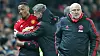 TRE POENG: Ole Gunnar Solskjær og Anthony Martial smiler etter tre poeng mot Brighton sist lagene møttes på Old Trafford i januar, mens Mike Phelan ser påfallende tankefull ut.