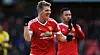 WATFORD, ENGLAND - NOVEMBER 21: Bastian Schweinsteiger of Manchester United celebrates his team's second goal scored by Troy Deeney of Watford during the Barclays Premier League match between Watford and Manchester United at Vicarage Road on November 21, 2015 in Watford, England. (Photo by Stephen Pond/Getty Images)