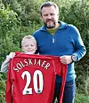 VIL HJELPE: Far Eskild Rundfloen og sønnen Lars med drakten Solskjær brukte i FA-cupfinalen i 2007.